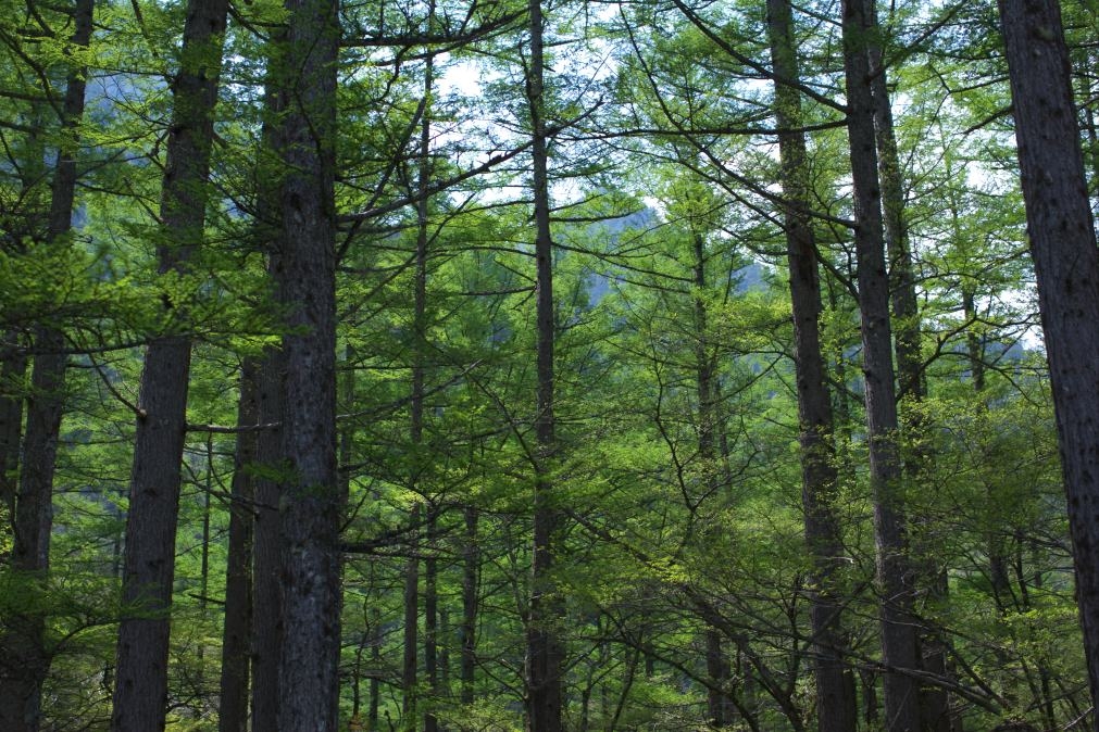 カラ松の新緑の緑