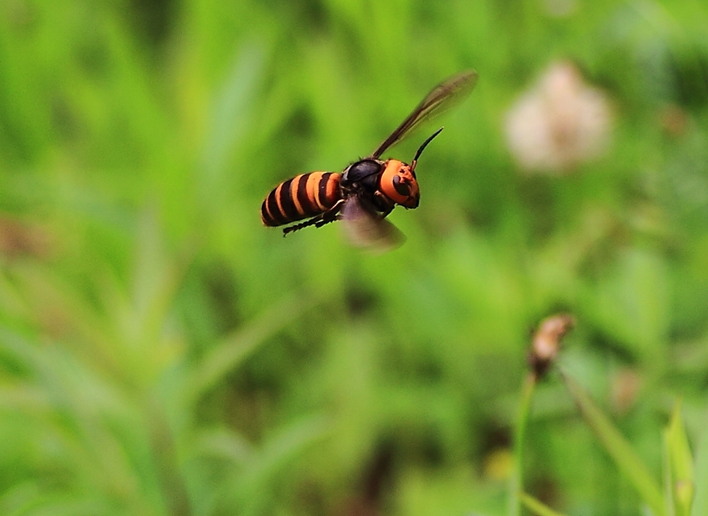 こっちに向かってくるオオスズメバチ