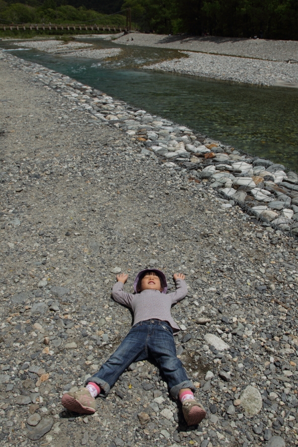 明神橋前で大の字に^^;