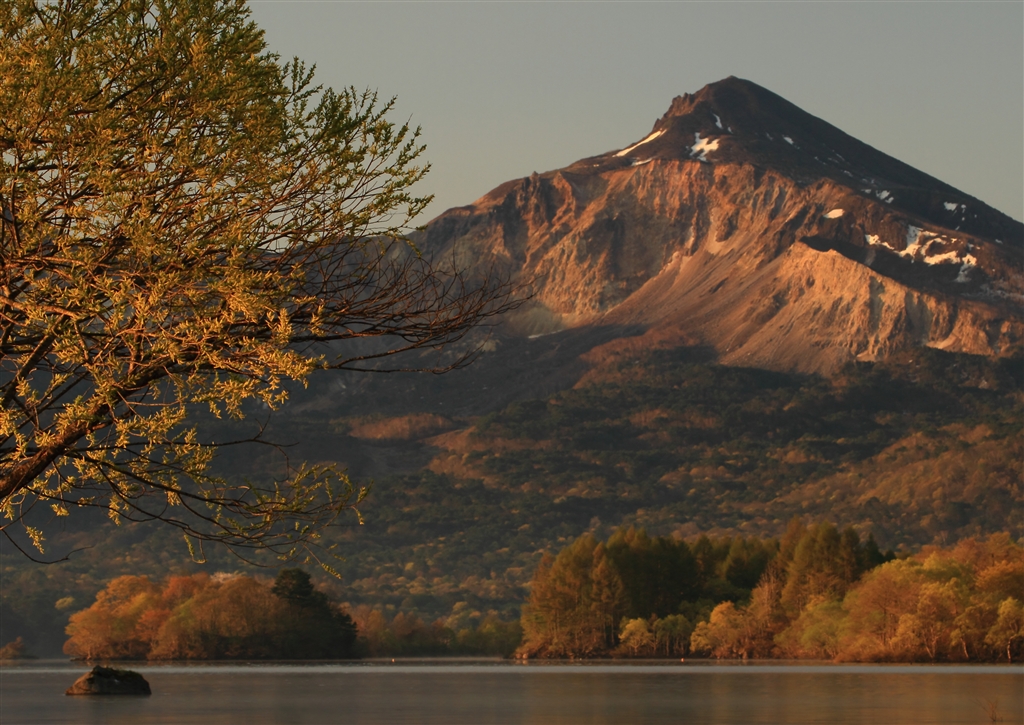 朝陽を受ける左の木を見せたい。