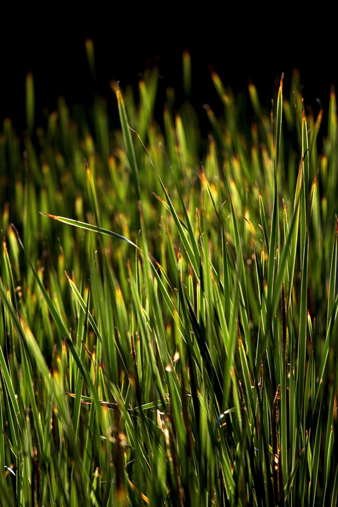 草が夕日に光っていた。