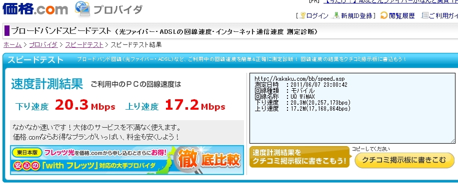 『結果表示』 スピードテスト(モバイル) 家電好きのだぁちゃんさんのクチコミ掲示板画像1/1
