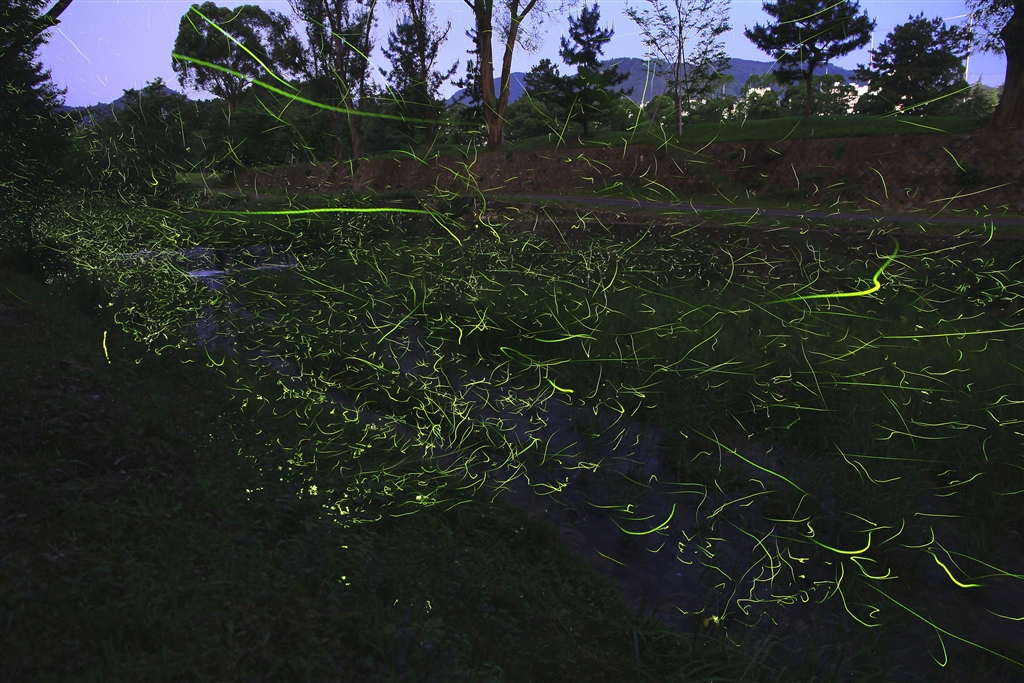 近所で撮ったホタル(180枚の写真をコンポジット)