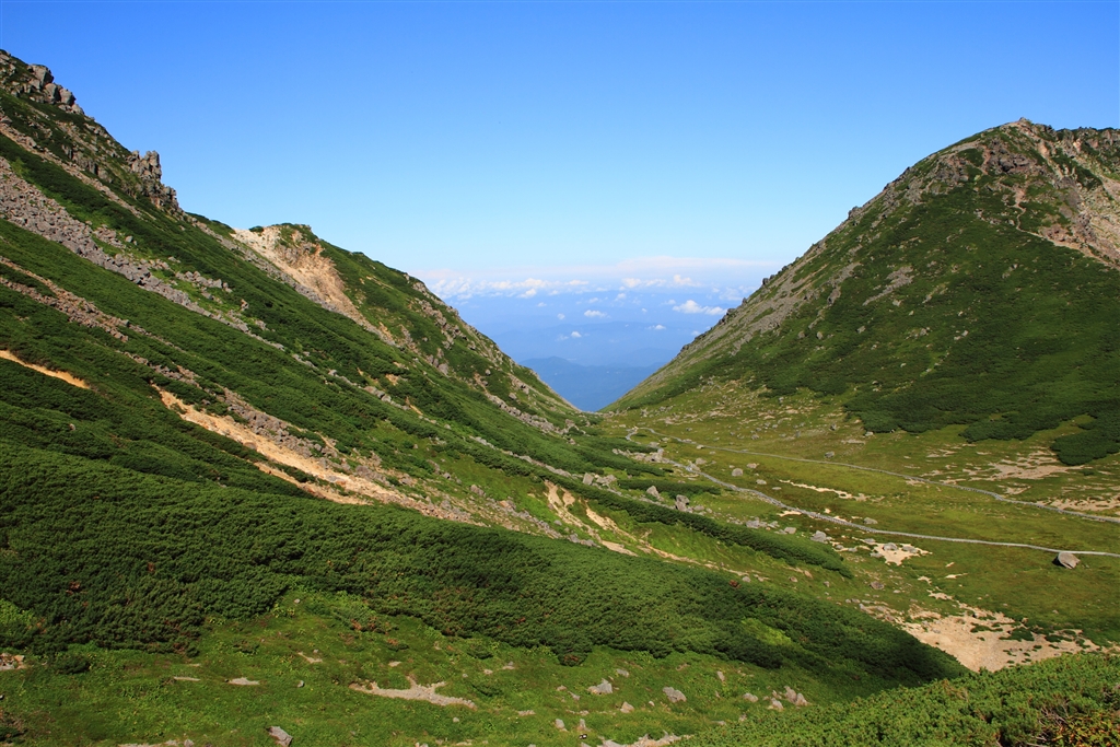 畳平のお花畑ですが、このV字に夕日が入るはずです。