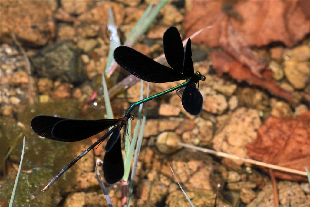 炎天下における灼熱の恋(子孫づくりに忙しいハグロトンボ)