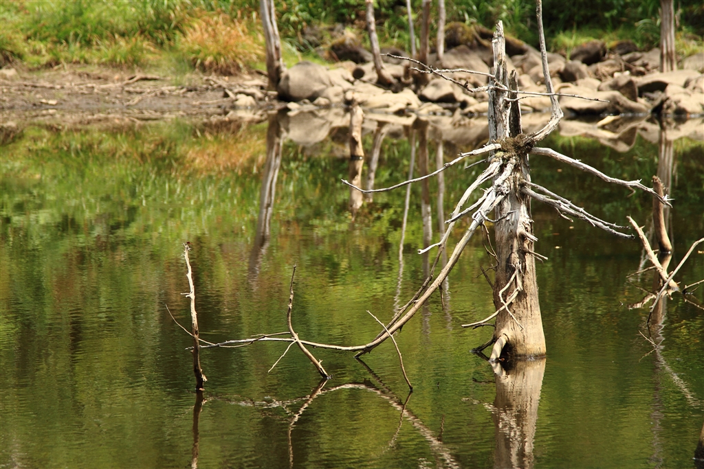 小さいけれど周辺に白樺があり、自然のオブジェもある、まいめの池。