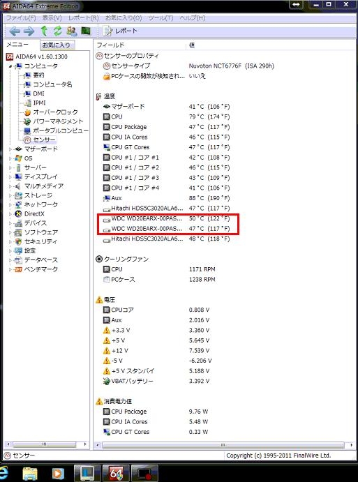 録画中のHDD温度