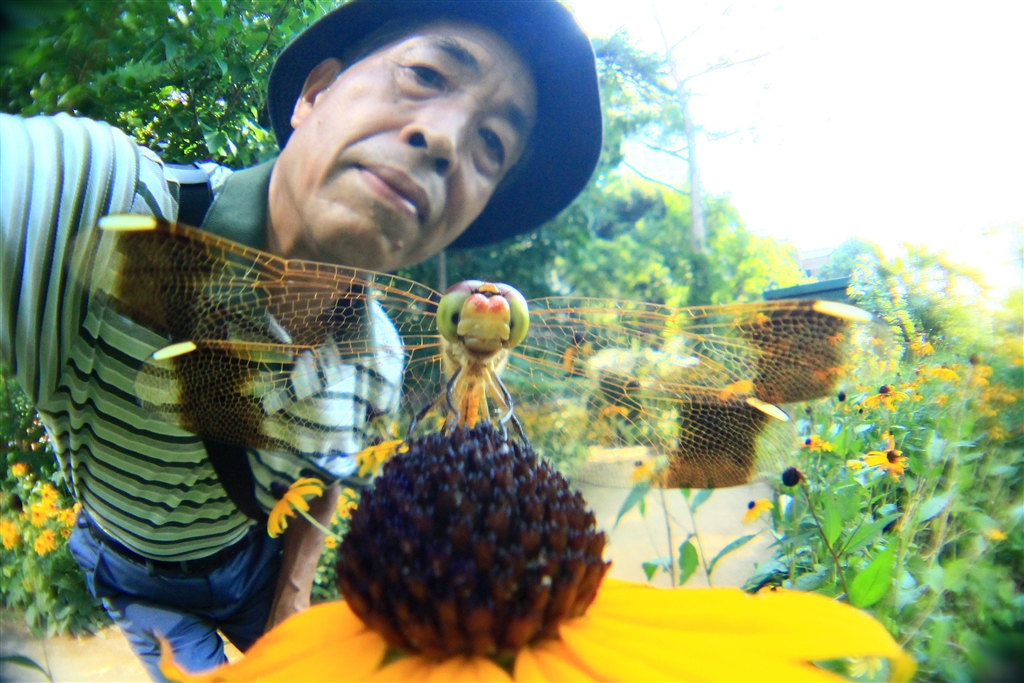 トンボと自画像(指名手配写真)
