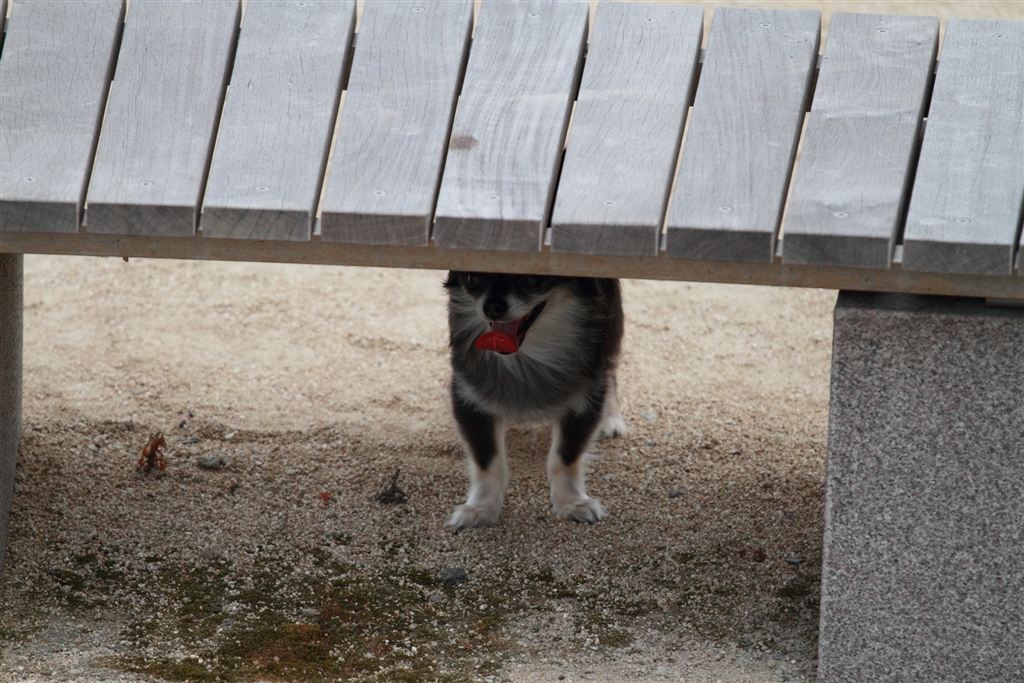 暑いからベンチの下に居ようっと!!