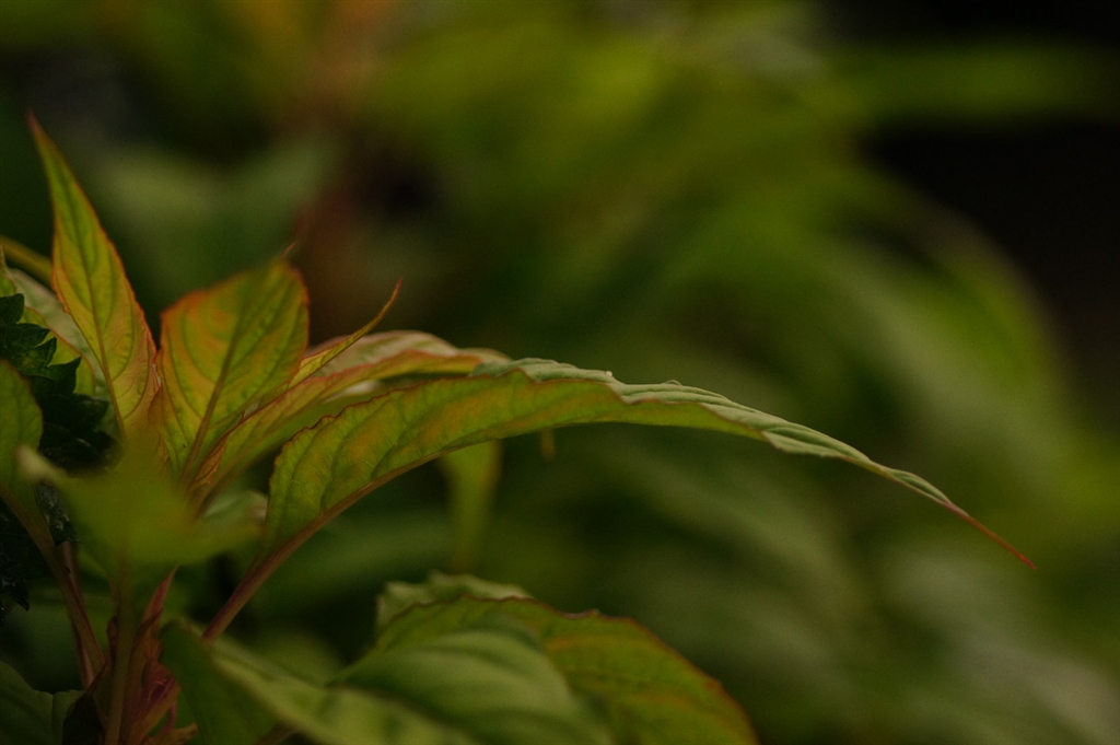 ミノルタ100マクロ(D) ケイトウの葉 透ける葉の色合い撮りたかった