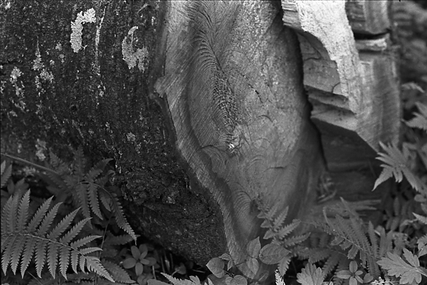 捨てられた木の幹と雑草たち(EF24-70mm F2.8L TRI-X 400)