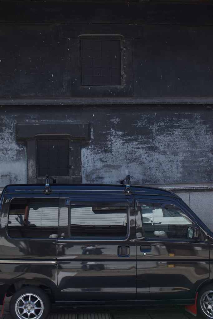 黒い壁の蔵と黒い車