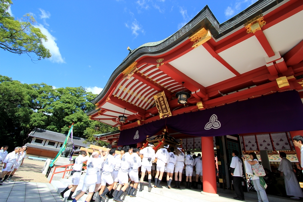 EF-S10-22mmで撮影しました。本殿にお神輿を搬入しているところです。