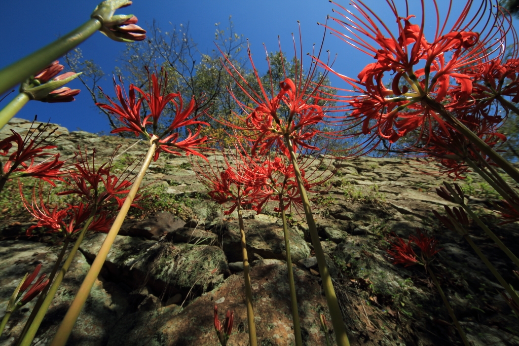 石垣と曼珠沙華