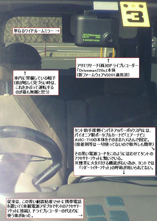 Driveman720s取付済のタント (また写真に色々文章を書き込んでますが)