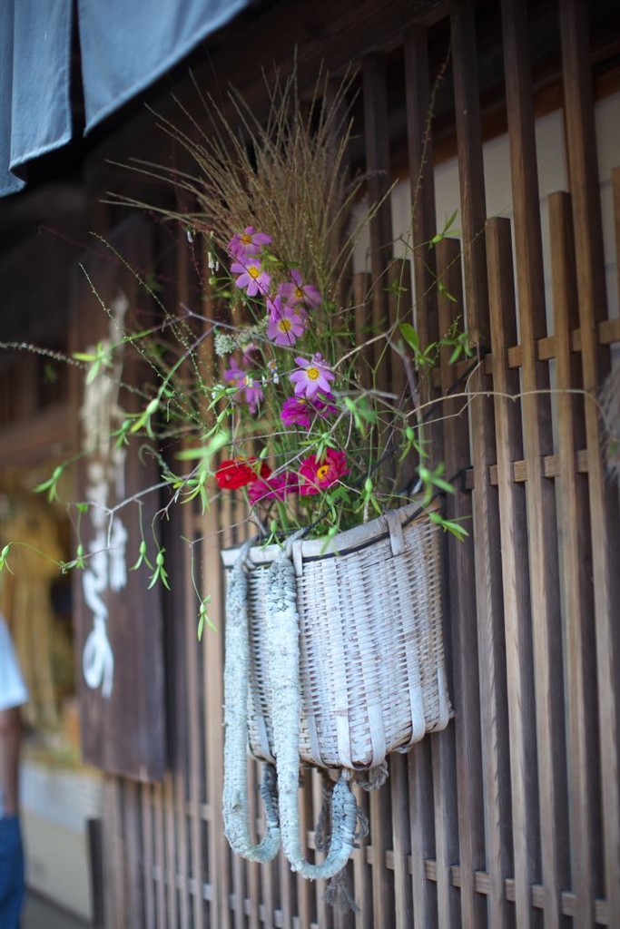 軒先の生け花(ツクバネもある)