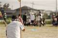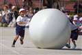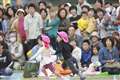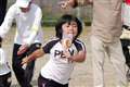 表情ギリギリ限界への挑戦。オチビも応援者も皆楽しいのが運動会だよ♪ |