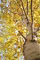 はらはらと散るイチョウの葉にピンを合わせて、バックにはコートの襟を立てて足早に歩く人(女性希望w)