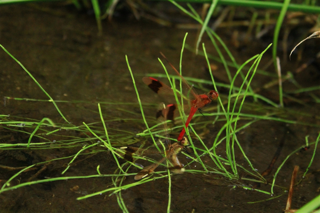 ♀:あなたぁ、助けて、溺れそう(溺れるトンボは草でも掴む^^)