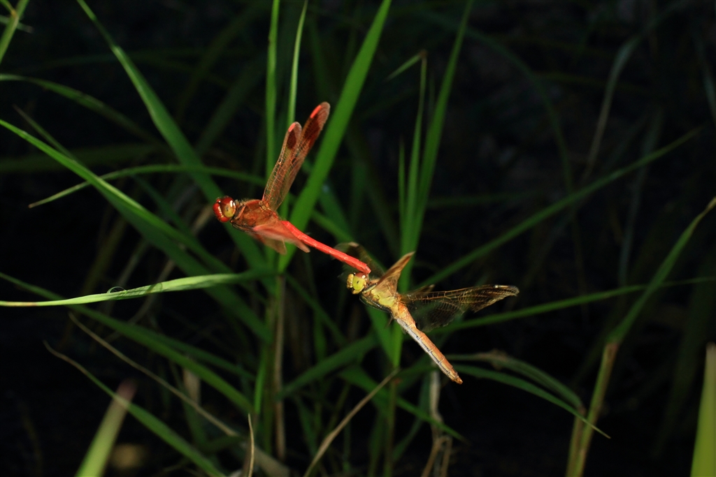 お馴染みミヤマアカネのカップル(照明して撮影)