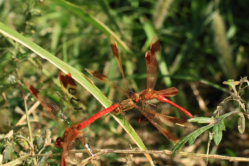 カップル(オス:左、メス:中)のメスに横恋慕して奪いに来た不届き者のオス(右)