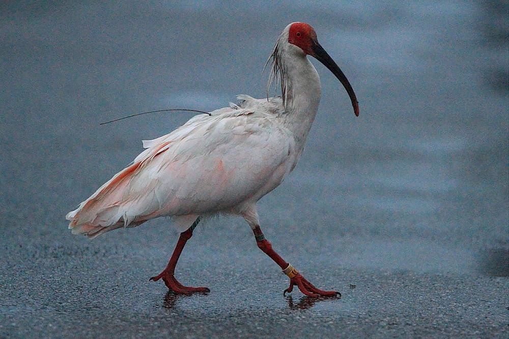 AM 5:55 小雨の中朱鷺の散歩です