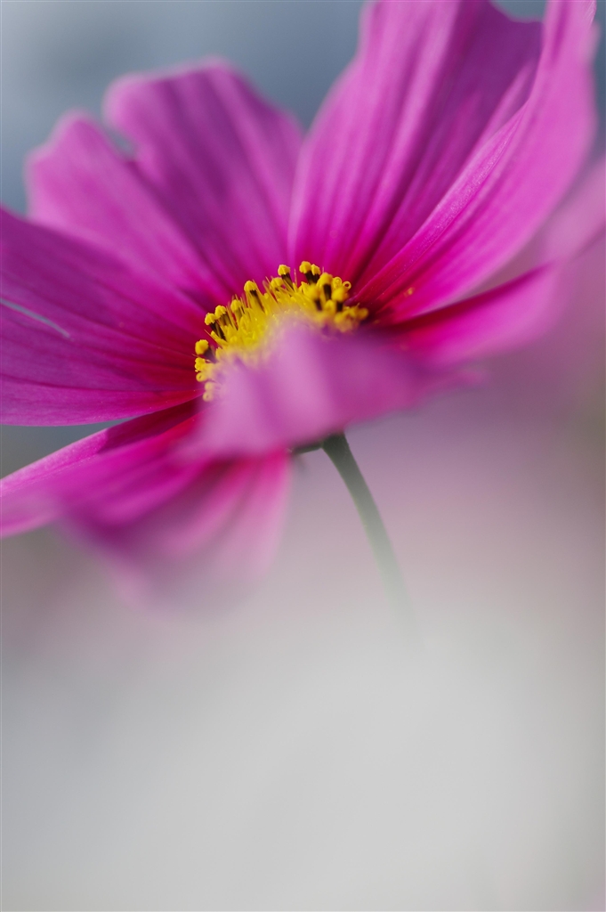 白いコスモスを前ボケに使い主体のコスモスを引きたてました。