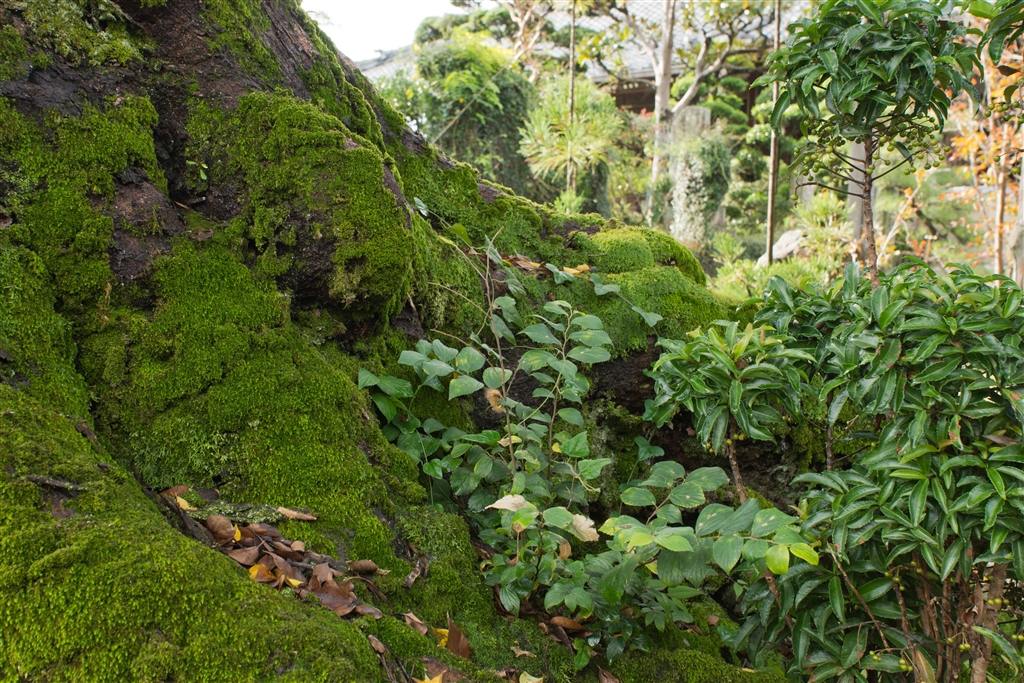 苔むした木の根元(よく見るとくクル禁さんが・・)