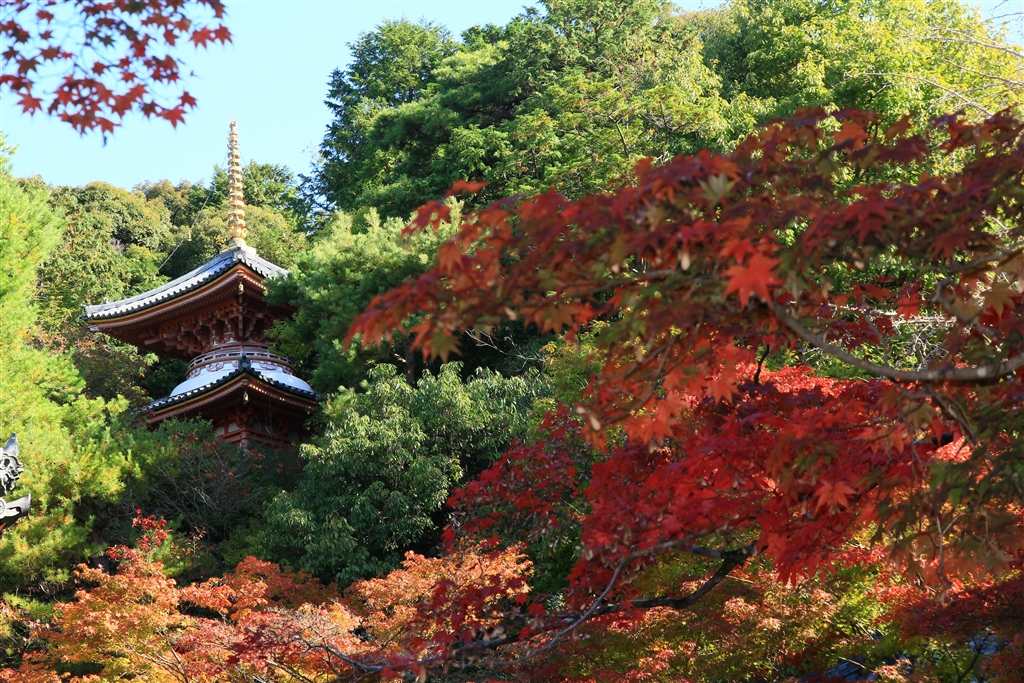 今熊野観音寺(日陰にある手前の紅葉にストロボを閃光)