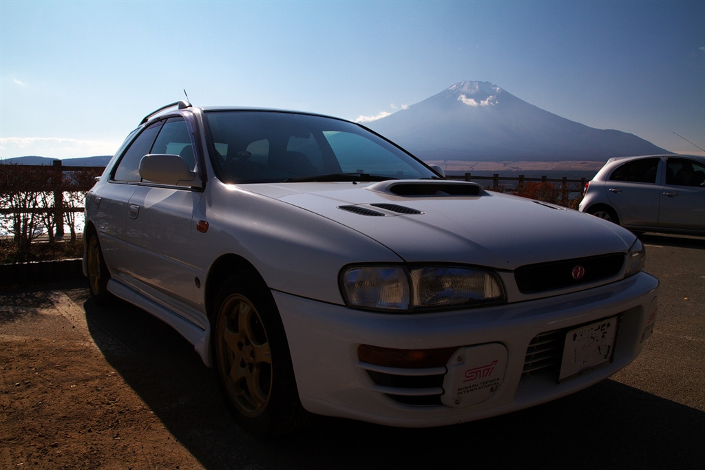 富士山をバックに