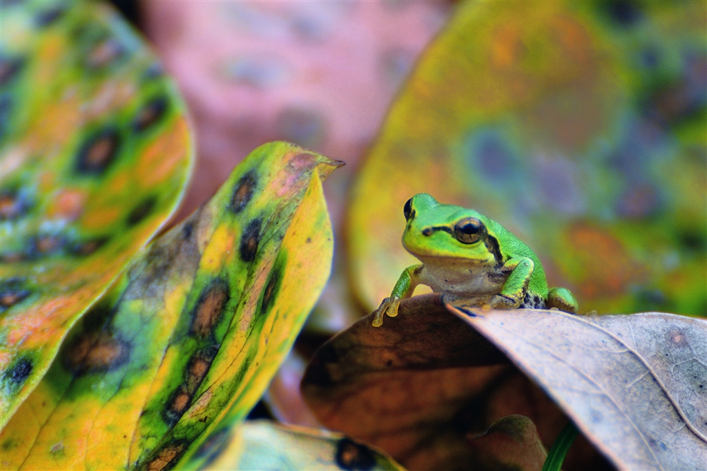 落葉とアマガエル