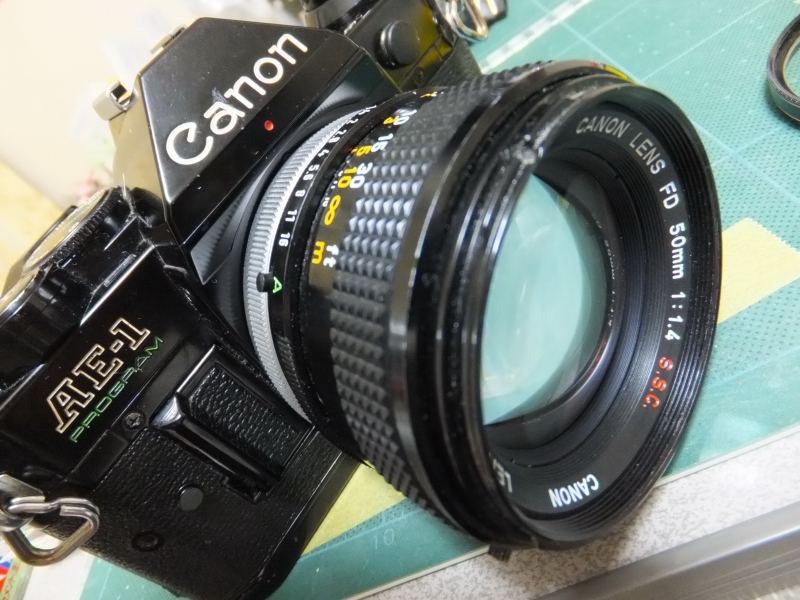 寄り道したドフでレンズ付きAE1-Pを発見!レンズの絞りにグリスが廻って