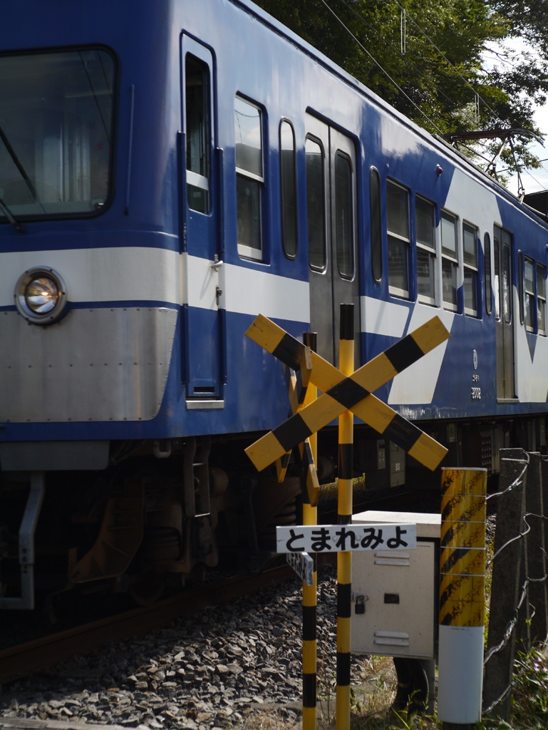 地元のローカル線。遮断機の無い踏切です。