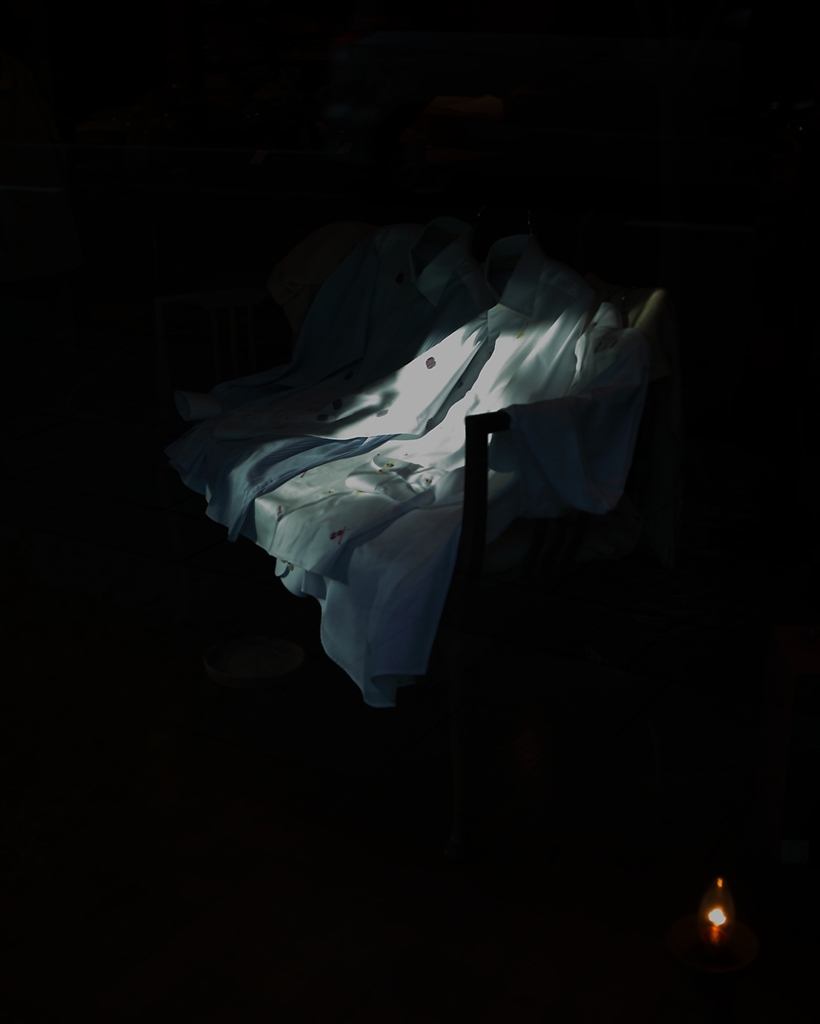 ウインドウにディスプレイされた白いシャツ。
