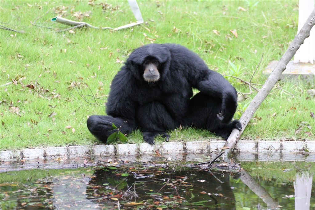地面に居るテナガザルは珍しい