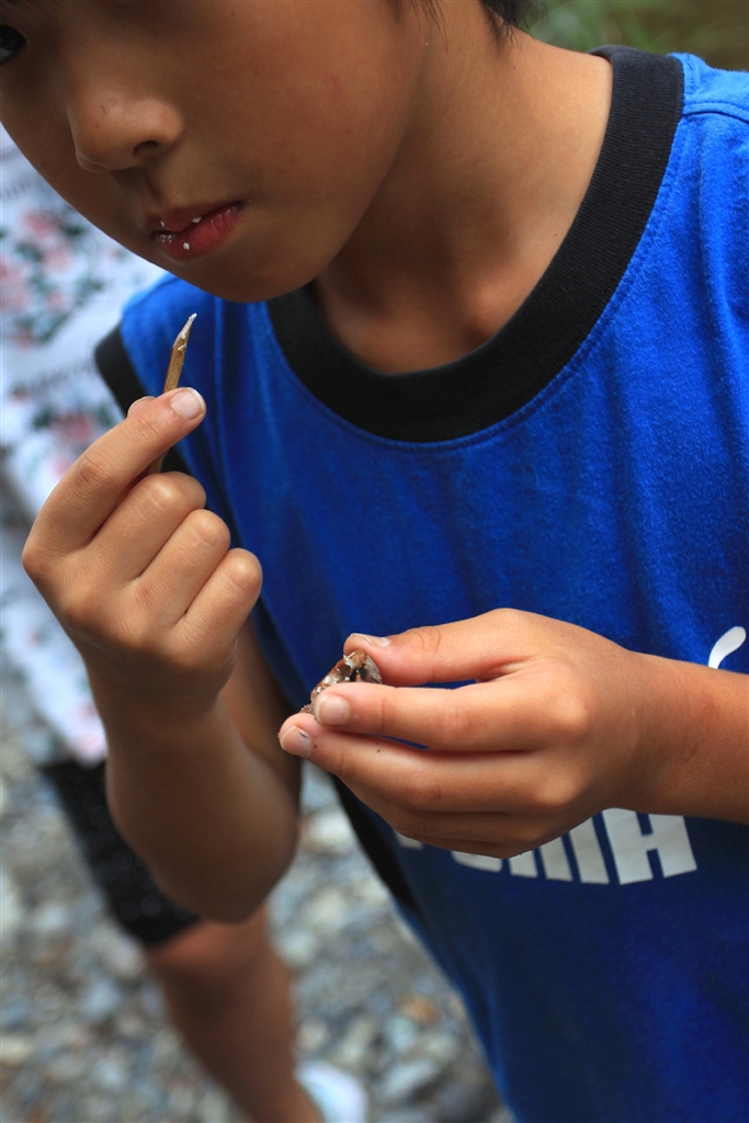 河原でクルミを食す! 久々のおや親?Bです(^^ゞ