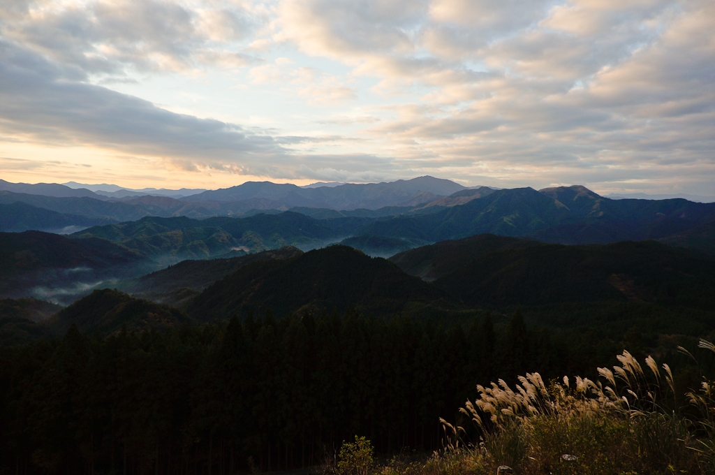 屏風岩公苑より曽爾村の朝