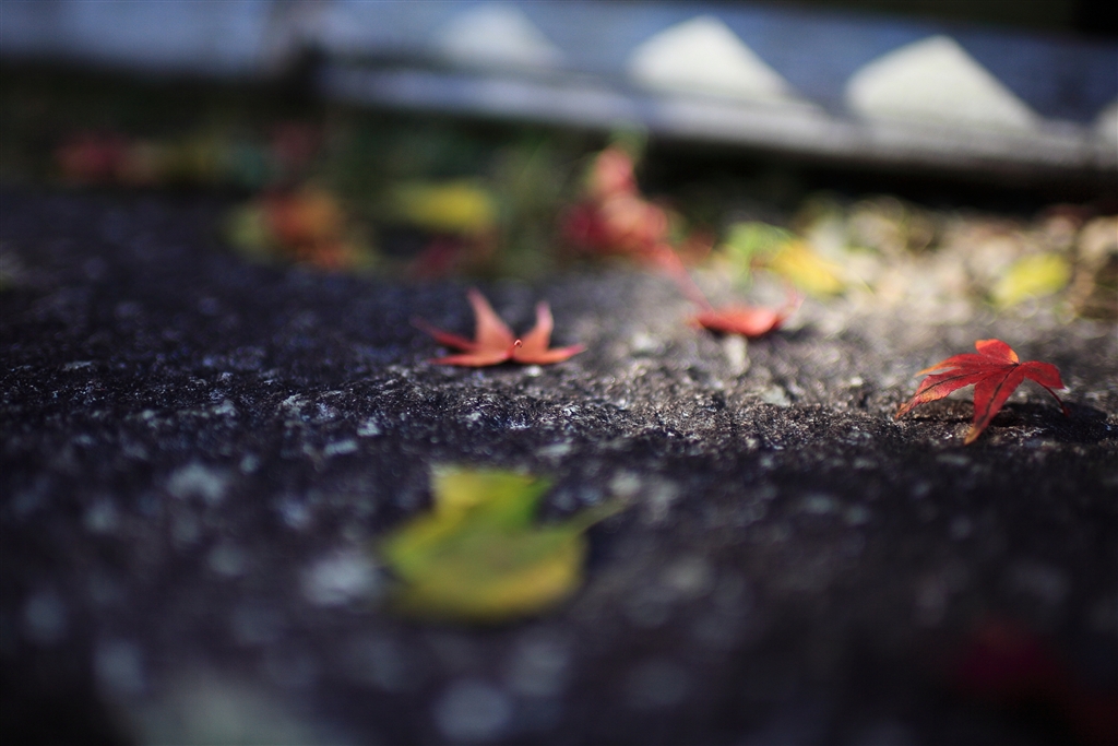 中央モミジの軸先にピント 右のモミジにもピントが来ています