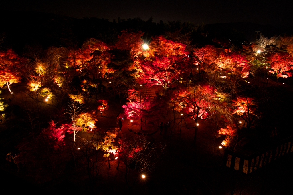 京都市内を見る展望所の上から庭園を見下ろして、、、