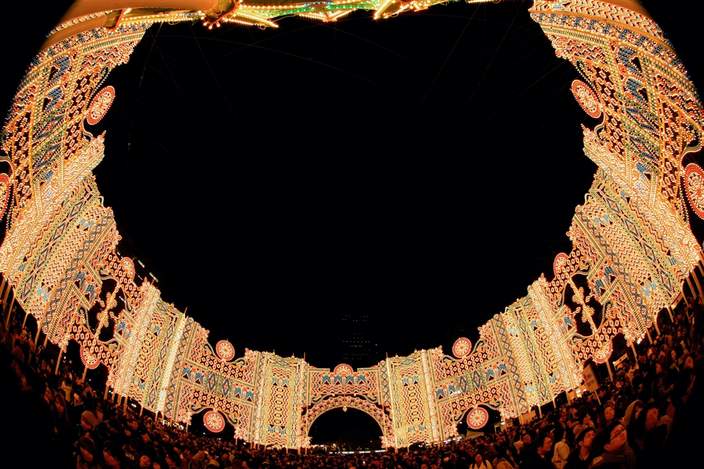 ルミナリエの光光光&人人人(フィッシュアイで撮影)