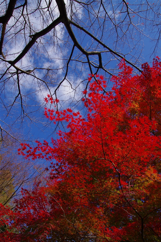 ← 青空をバックに枯れ木と対比させてみました。