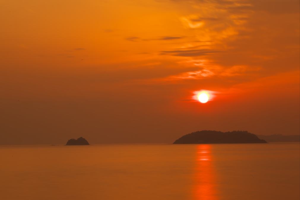 西の空にしずむ太陽を
