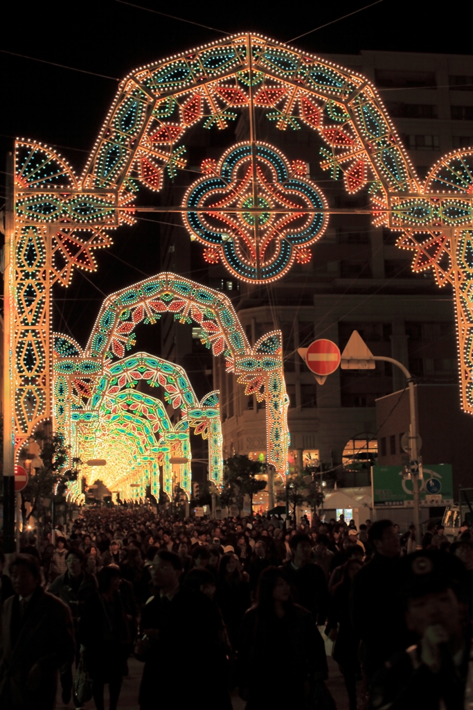 神戸ルミナリエ この混雑ぶり 奥から手前へ一方通行