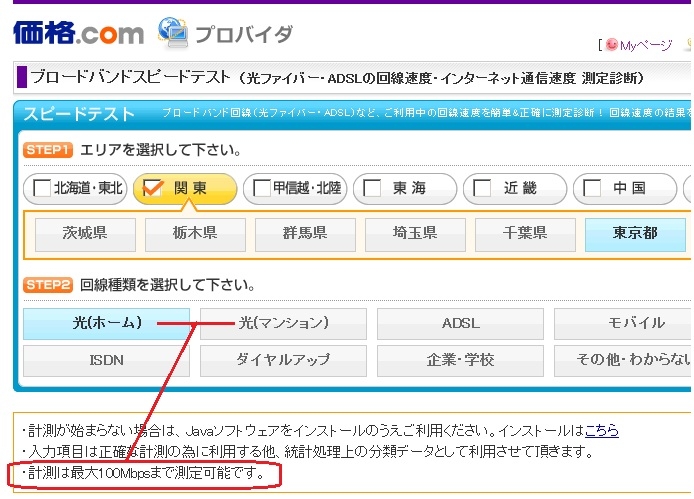 スピードテスト(光ファイバー)
