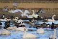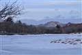 雲と鴨がとてもバランス良く雪山を引き立ててますね!!