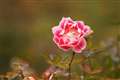 バラが今頃咲いている…。この写真は、背景のバラとのバランスがいいです。
