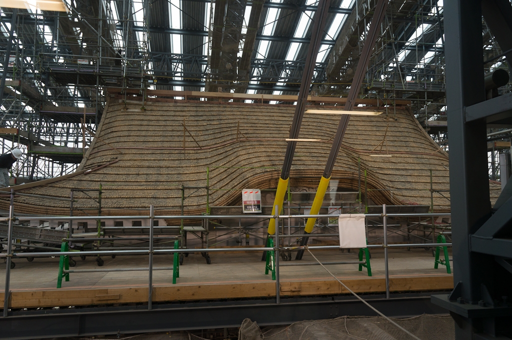 素屋根(仮設)と天守閣