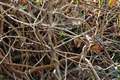 今日は曇天の空模様で時折、雨が降っている中、ロウバイの花を見つけたので