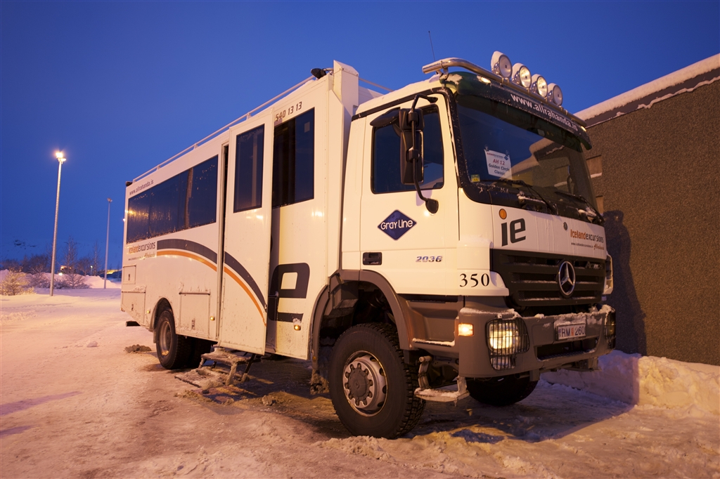 こんなバスでのツアーで行きます。此れで朝10時前位