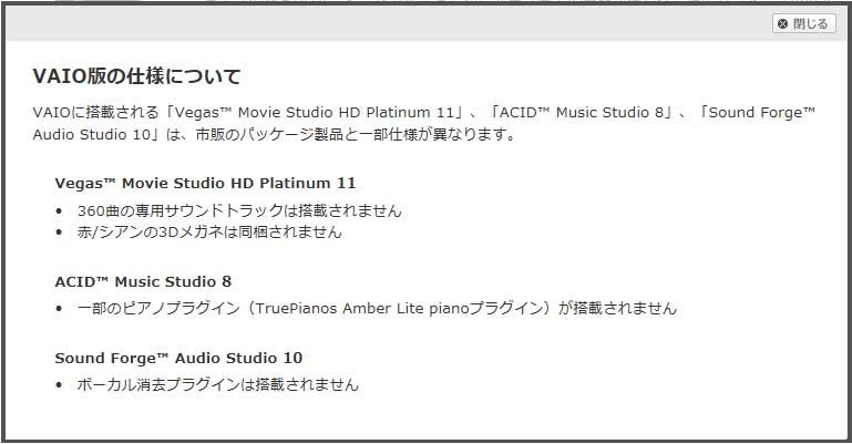 VAIO版の仕様
